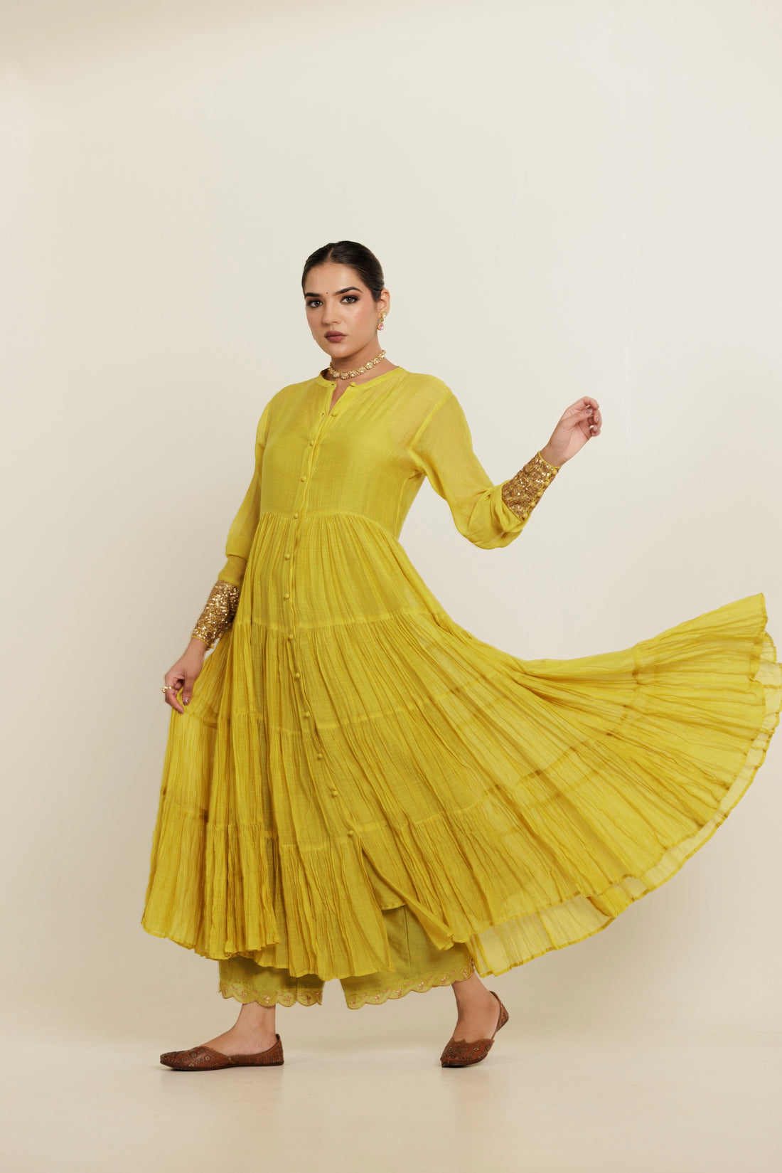 Sand Yellow Gota Patti Embroidered Chanderi Kurta Set